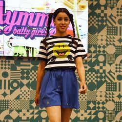 「Aymmy」はアメリカ・カリフォルニア出身、在住の17歳の女の子“エイミー”のファッション、趣味、友人、環境などのライフスタイルを投影したブランド。ランウェイには、アメリカンカルチャーを軸とした、ポップとエッジをミックスさせたストリートスタイルを、モデルのEVAや谷奥えま、谷奥えり、POCHI、小澤楓、ゆら、そして瀬戸自身が着こなして続々と登場。瀬戸のこだわり抜いたアイテムの数々に現地ファンからは歓声が上がった。