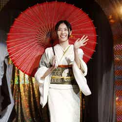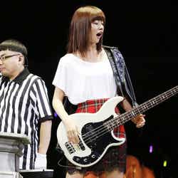 地元愛をこれでもかとアピールしたのは山本彩さん&高橋みなみさん。NMB48のさや姉はくいだおれ人形のストライプ柄ドレスで、特大のたこ焼きをあしらったパフスリーブがキュート。スカート部分にはビリケンさんやふぐ、太陽の塔といった大阪ならではのモチーフをこれでもかとちりばめています。