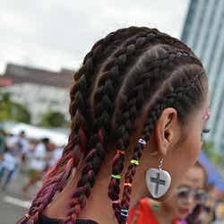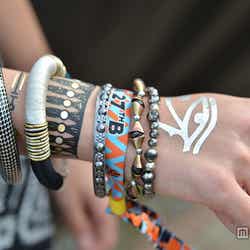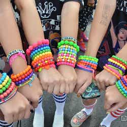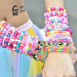 このほかにも、カラフルビーズやアルファベットビーズを自分の好みで組み合わせて作るブレスレット「キャンディ(Kandi)」はほとんどの人が着用し、編み込みスタイルやビジューメイク、ボディーペイント、ヘッドアクセで個性を放つ女性も数多く見られました。