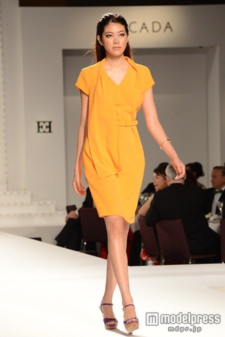 またイベントでは、一足早い「2015 春夏コレクション」も開催され、2015年のトレンド“ボタニカルフラワー”柄のドレスなど全38着が披露。さらにゲストモデルとして菜々緒と森が出演。森は計4回、堂々としたウォーキングで光輝いた。一方の菜々緒はトリとして登場。スカートのボリューム感で優雅なシルエットを演出した華やかなドレスを着こなし、圧倒的な存在感を放った。