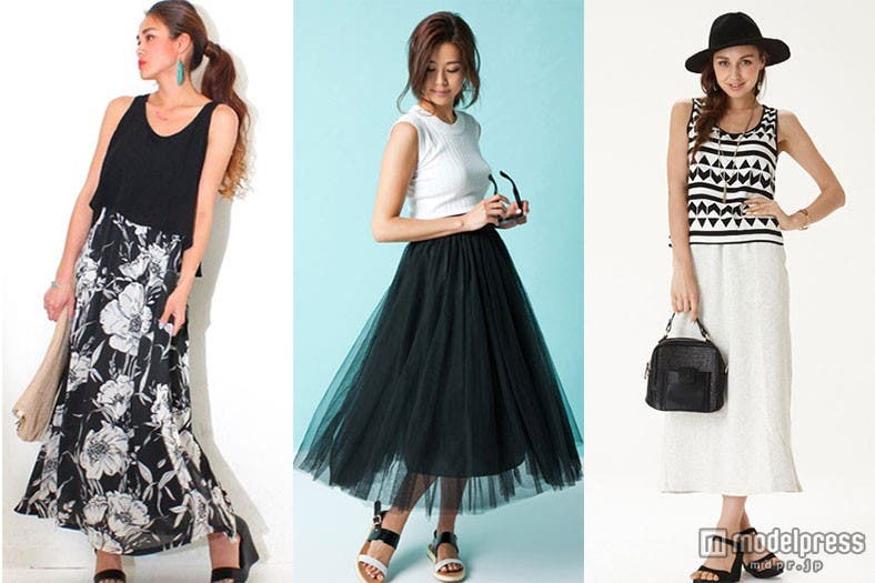 軽め素材のロングスカートは、着るだけで大人っぽい女性のイメージを演出できる上、日焼け防止効果も◎。長時間外を出歩くときや、ちょっとリラックスしたい気分の時のおしゃれに活用したいですね。(modelpress編集部)