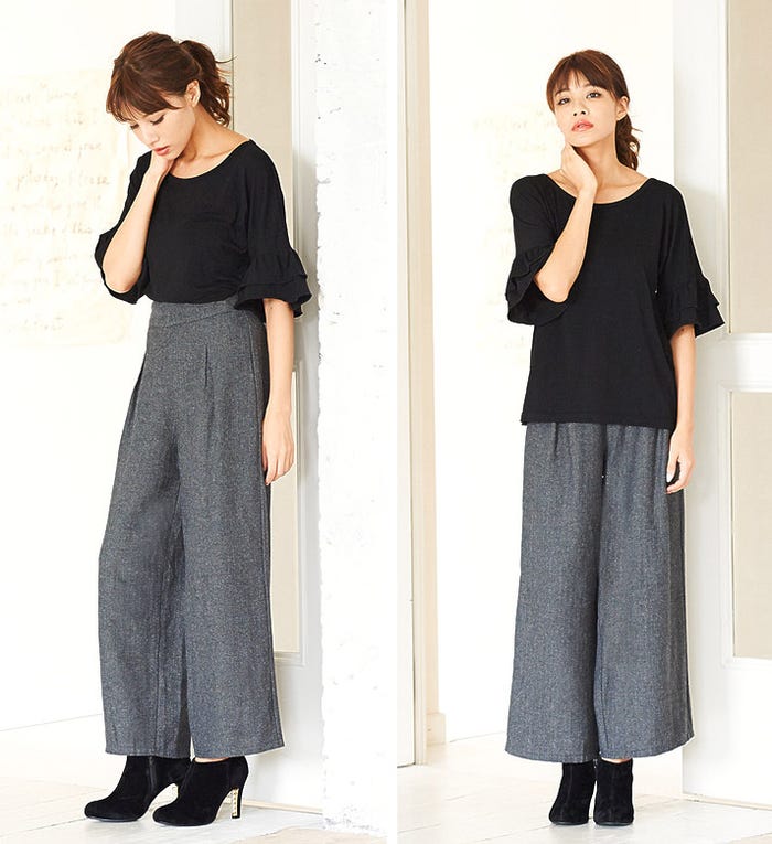 脚長見えなワイドパンツで大人っぽく