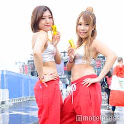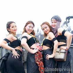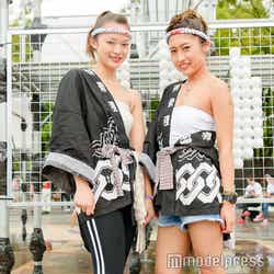 今年もセクシーなファッションに身を包んだ美女たち。網タイツやメッシュ素材などで雨にも負けず大胆な肌見せを披露した。グループは双子コーデ多数
