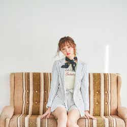 同ブランドは「New sweet casual」をコンセプトに、HAPPYでキラキラした日々を届けるべく、遊び心のあるカジュアルマインドをプラスオンしたスタイルを提案。江野沢は春らしい爽やかなストライプのセットアップ、ガーリーなミニ丈ワンピースなど様々なコーディネートを着こなし、スラリと伸びる美脚を存分に披露している。(modelpress編集部)