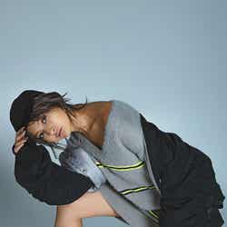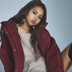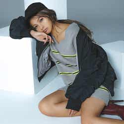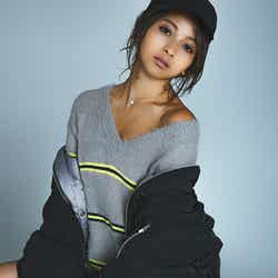同ブランドは「L.A CASUAL」をコンセプトに西海岸らしい空気感をイメージ。オンナらしい体のラインを露出し、シンプルなアイテムをシルエットや色や小物でエッジィにスタイリング。カジュアルで色気のあるオンナの子のスタイルを提案する。ゆきぽよは普段のビビッドピンクのリップカラーを封印し、ヌーディーなメイクで雰囲気ガラリ。秋冬らしいニットやパーカースタイルをクールに着こなしている。