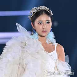 一方、櫻坂46の山崎天(※「崎」は正式には「たつさき」)は細めの三つ編みを織り交ぜたヘアスタイルに大きなビジューをプラス。キラキラしたビジューが顔周りをぱっと明るくするとともに、可愛いだけじゃないモードな雰囲気を体現した。