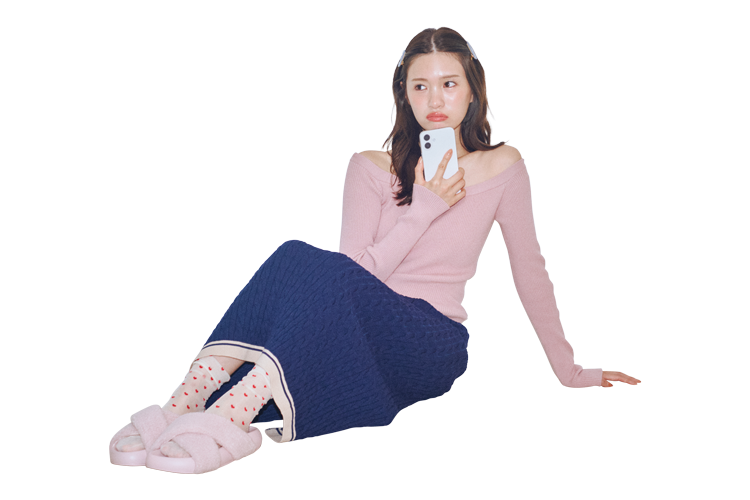 女みたっぷりなニットスカートをあわせれば、即大人っぽコーデに。体にフィットする素材を選んであざとさMAX♡