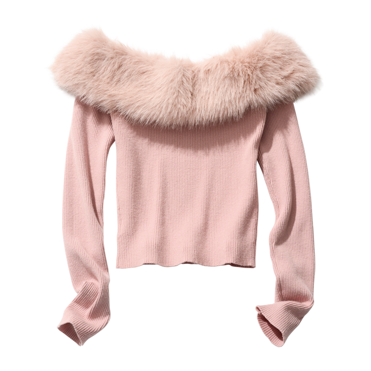 オフショル×ピタピタ素材の最強あざとニット♡ 初デートなど女み全開でいきたいときにぴったり。ファーは取りはずし可能だから、着こなし自由自在。