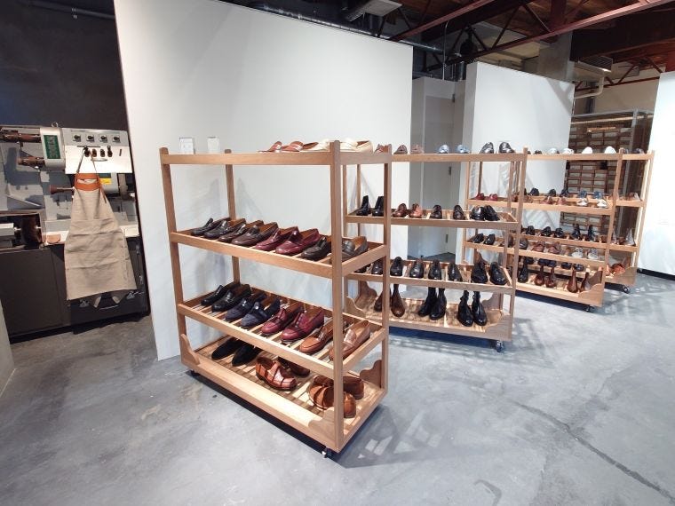 仏製革靴「ジェイエムウェストン」を輸入販売するジェイエムウエストン・ジャパンは10月31日、東京・日本橋浜町に世界初のアトリエ・ブティック「ジェイエムウエストンアトリエ」を開いた。リペアやビンテージ靴の販売、アートの展示を通じ、ファンとのコミュニケーションを育む。