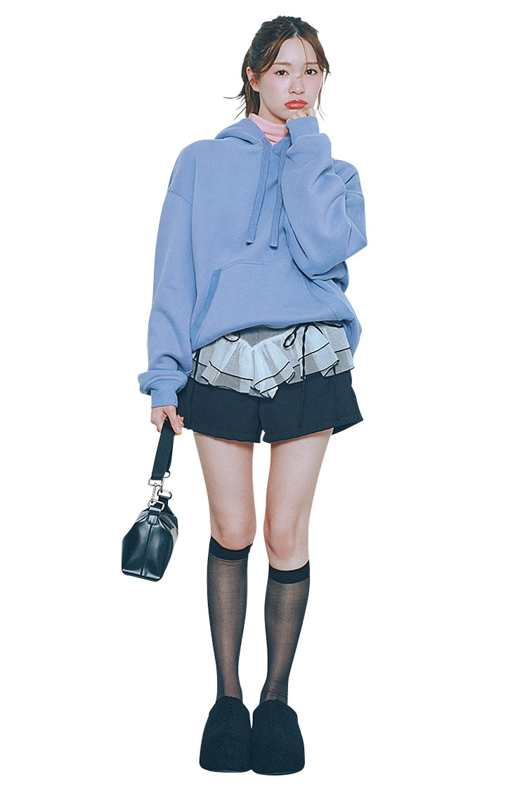 ピンクタートルにフーディスエットを重ねて、ゆるっとラフなムードに。甘さとカジュアルのバランスがちょうどいい今っぽコーデに♡