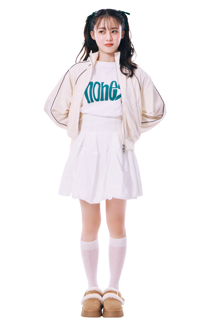 ワントーンの間のびを防ぐ異素材あわせが上級テク。ライブTにあわせたオール白がガーリーさんにぴったり。