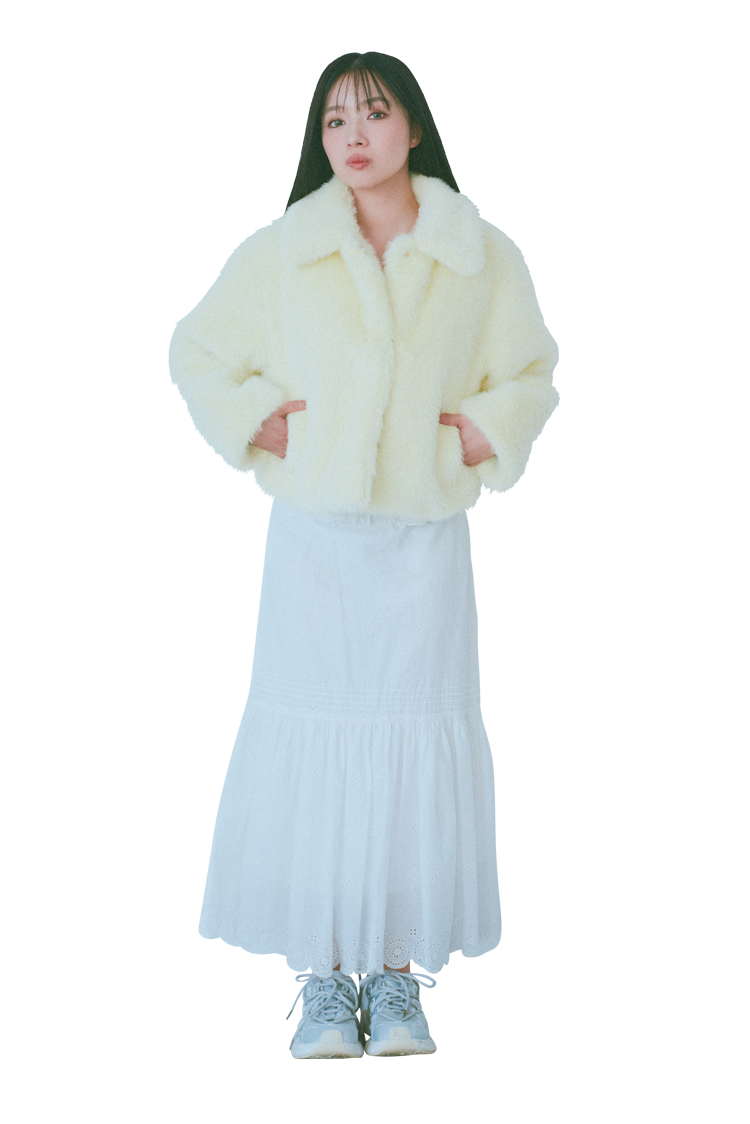 女のコらしさが手に入る、ふんわりとしたスカート。ボリュームのあるカラーアウターをあわせて、華やかさを。