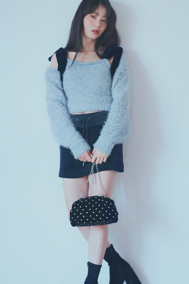 ラメニットや小物で華やぎポイントを。全身に散らすのが正解。