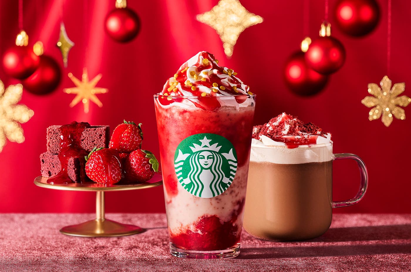 【スタバ新作メニュー】「ストロベリー & ベルベット ブラウニー フラペチーノ」ホリデー気分のラテ3種も登場