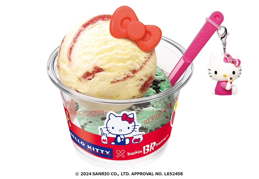 サーティワン アイスクリームでは、サンリオの人気キャラクター・ハローキティとコラボレーションした「HELLO ICE CREAM!(ハロー アイスクリーム!)」を、2024年11月1日(金)より実施。この時期だけのスペシャルなアイスクリームを提供する。