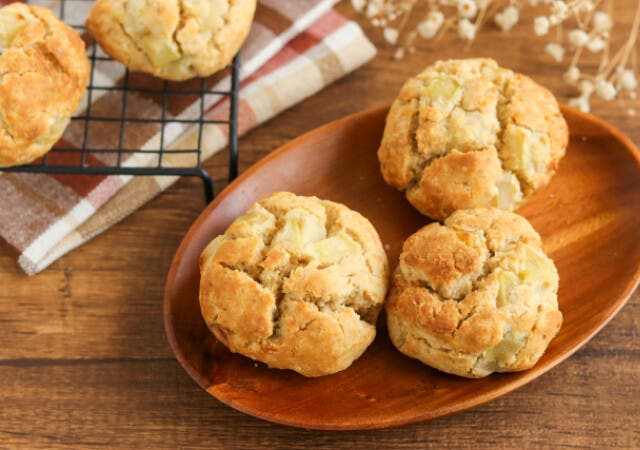 丸めて焼くだけ超簡単!さくホロッ食感♡米粉のりんごスコーンのレシピ