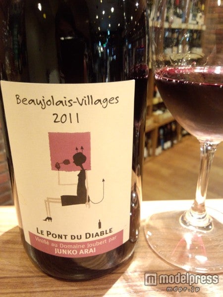 ワインの名前は“ボジョレ・ヴィラージュ・ル・ポン・デュ・ディアーブル・ヴィニフィエ・パー・ジュンコ・アライ”といい、フランスのボージョレ地区で造られています。