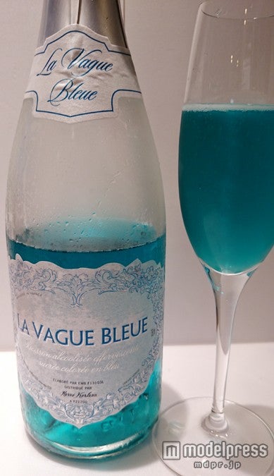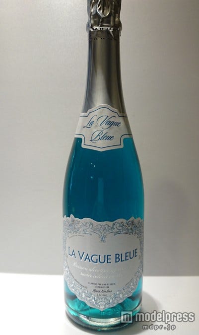 綺麗なブルーのスパークリングワイン。まるで海の中にいるような美しい色合い。