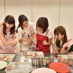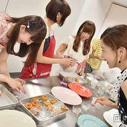 ABCクッキングスタジオが提供する「クロワッサンドーナツ」は、サクサクパイシートをパン生地で包み込み、ミニサイズのドーナツ形に焼き上げたスイーツ。ふんわりとした見た目ながらも、サクサクした食感が楽しめ、デコレーションを加えれば、自分好みのキュートなドーナツも作れちゃいます。さっそくデコレーションに挑戦するメンバー。すでに焼き上がった状態のクロワッサンドーナツに、思い思いのトッピング。途中「これってどうやったら出来る?」といった疑問にも、yui&ayumi先生が笑顔でアドバイス。料理中は、「楽しい!」という声があちこちから聞こえてきました。