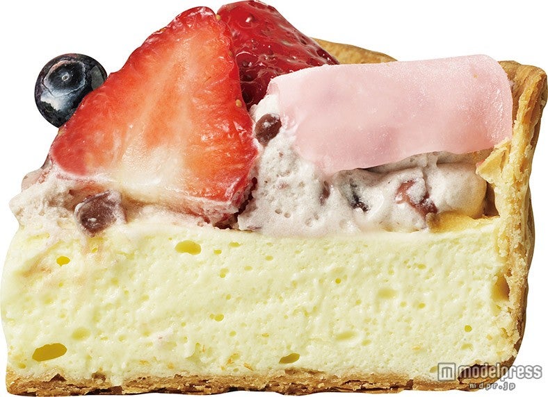いちごのほどよい酸味とつぶあんクリームが絶妙にマッチし、和と洋の美味しさを同時に楽しめる、おめでたいチーズタルトとなっている。(modelpress編集部)