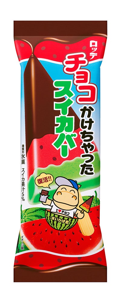 スイカの形をイメージした「スイカバー」からチョコをコーティングした「チョコかけちゃったスイカバー」が復活。4月18日(月)から販売する。