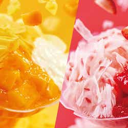 「コットンスノーキャンディ」は、アイスを薄くスライスすることで、柔らかく、口に入れた瞬間に“わた雪”のように“ふわっ”と溶ける新食感の冷たいスイーツ。発売開始から3年目を迎える今年は、新たにマンゴーとストロベリーの“フルーツの果肉と果汁”を混ぜ込んだアイスを使用したフレーバーを4種を追加。練乳をトッピングした「コットンスノーキャンディ マンゴーミルク」、「コットンスノーキャンディ ストロベリーミルク」、そしてさっぱりとした味わいを引き立てるヨーグルトをトッピングした「コットンスノーキャンディ マンゴーヨーグルト」、「コットンスノーキャンディ ストロベリーヨーグルト」が登場する。