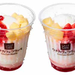 また、6月7日(火)より販売される「ウチカフェフラッペ ミックスフルーツ ヨーグルト(殺菌)入り」はミックスベリーソースの上に、ヨーグルト(殺菌)を使用したみぞれとアイス、3種のフルーツ(ストロベリー、ブルーベリー、リンゴ)をトッピング。ヨーグルトの酸味とフルーツのさっぱりとした味わいが楽しめる。(modelpress編集部)ウチカフェフラッペ ストロベリーチーズケーキ