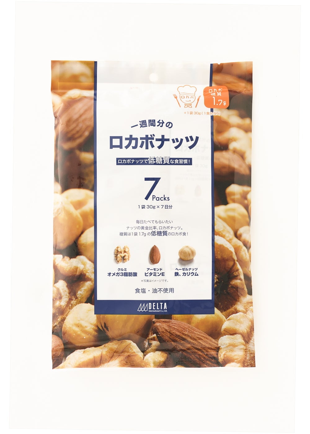 「FOODEX美食女子グランプリ2017【ミール部門】」で金賞を受賞したのは、低糖質で栄養価が高い間食ができるように作られた「1週間分のロカボナッツ」(株式会社デルタインターナショナル)。そもそもロカボとは、“ロー(低い)+カーボハイドレート(炭水化物)”の略で、「ゆるやかな糖質制限」という意味。血糖値を上げると言われている「糖質」を、1食20~40g、間食10g、1日70~130gに制限することで、食後の血糖値上昇を抑えられるという食事方法で、今モデルや美容家の間でも注目が集まっています。