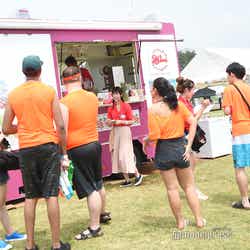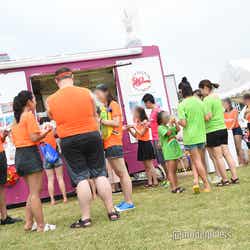 モデルプレスが取材に訪れたのは2日目の28日。太陽がギラついていたこの日は最高気温が30度を超えるほどの快晴で、まさに“ウォーターラン日和”。冷たいタピオカを求めて、若い女性はもちろん、男性も、親子も、外国人参加者も「amitapi」ワゴンの前に列をなしていた。特に、人気の「タピオカ紅芋ミルク」はすぐさまソールドアウトしてしまうほどの盛況ぶり。アイスクリームとさくらんぼがのっていて見た目もキュートな「タピッシュシリーズ」(オレンジ、シークワーサー、グレープ)も人気で、店舗と同様リボンで一工夫したストローも女性たちから「可愛い」と喜ばれ、写真に収める人の姿も多かった。