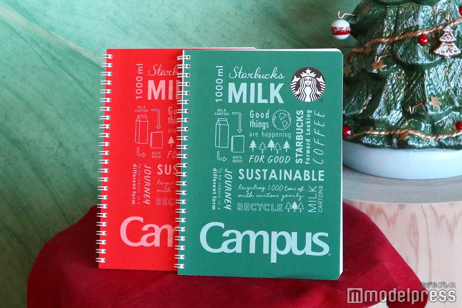そして、2020年11月6日(金)より発売されるホリデーシーズン限定グッズからは、スターバックスの「ミルクパック」を主原材料とした再生紙を表紙と裏表紙に使用したキャンパスリングノート「ホリデー2020スターバックス キャンパスリングノート レッド/グリーン」(各480円)がラインナップ。