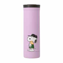 PEANUTS ステンレスコールドカップタンブラー ピンク 473mlは日本で初めて発売するタイプのタンブラーで、透明な蓋の内部にウッドストックやグリーンハートが閉じ込められている遊び心溢れる仕様だ。