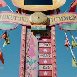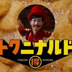 今春放送したシリーズ1、2作目に続く「トクニナルドキャンペーン」のCM撮影に臨んだ堺は、頭から足元まで鮮やかな赤色で統一したお馴染みの衣装で撮影スタジオに登場。「Mr.トクニナルドとして、またこの街に戻ってくることが嬉しい」と、愛着のあるキャラクターを再び演じられる喜びを語った。前回キャンペーンが予想を上回る好評だったことを受け、美術セットの規模が拡大されたと説明を受けた堺は、新たに増設された大型のアトラクションに目を向け「すごいですね~。皆さんに買っていただいたおかですね!」と感激の笑みを浮かべた。監督との打ち合わせを終え、いきなりナゲット型の巨大ハンマーを手渡され目を丸くしていた堺であったが、「こんな感じで担ぐんですね」と、すぐに演技やセリフの内容を確認するなどやる気満々の表情でスタンバイ。リハーサル中にはナゲット型ハンマーを使った独自のストレッチ運動で身体をほぐすなど、道具がすっかり手に馴染んだ堺は、撮影本番がスタートすると見事なハンマーさばきを披露した。