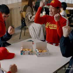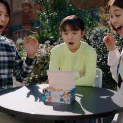 セリフを話しながら歩き、ターゲットに向けてナゲットハンマーを振り下ろす一連の演技を滑らかに行うため、口調や歩幅、動きのタイミングを入念にチェックしていた堺。肩に乗せたハンマーを振り上げる際に向きがズレやすいことや歩幅が数センチ変わるだけでターゲットに命中しないなど難度の高いアクションであったが、堺は集中力を高めて本番に臨み、わずか数回のトライでOKテイクを獲得した。ポケモンをデザインしたオリジナルパッケージを囲むシーンの撮影では、スタッフが数人がかりで細い糸を操りながらフタを開けるという“超アナログ”なシステムに「なんだか複雑な仕掛けですね~」と強い関心を示していた堺。テイクを重ねる度に準備の時間を要する撮影となったが、カメラが回りパッケージのフタがパカッと開くと、ハイテンションな笑顔で歓喜の気持ちを表現した。両サイドからナゲットに熱い視線を送るアシスタント役のキャスト2人は1作目から共演していることもあり、堺との息もピッタリで、コミュニケーションをとりながら撮影を楽しんでいた。(modelpress編集部)