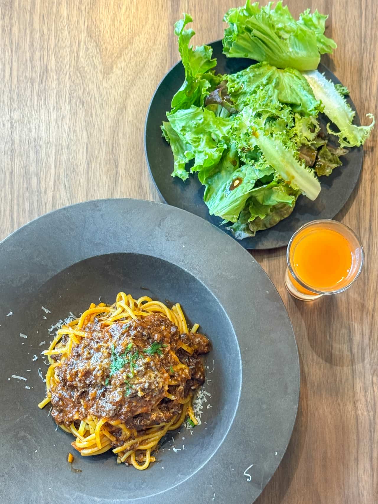 今回注文したのは、「味噌と黒毛和牛挽肉の発酵ボロネーゼパスタ」。パスタは生麺と乾麺から選ぶことができ、今回は生麺をチョイス。隠し味に発酵食品の味噌が使われており、黒毛和牛の旨みと、深みのある濃厚なソースがもちもちのパスタとよく絡みます。セットのみずみずしいサラダも、八尾で育てられた食材で作られています。