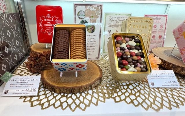 ほかにもさまざまな商品がラインナップ。万博出展記念限定缶の「ビスキュイ・サントメ・リュミエール」は、サントメ島産カカオと小浜島産黒糖を使用した2種類のビスキュイの詰合せです。