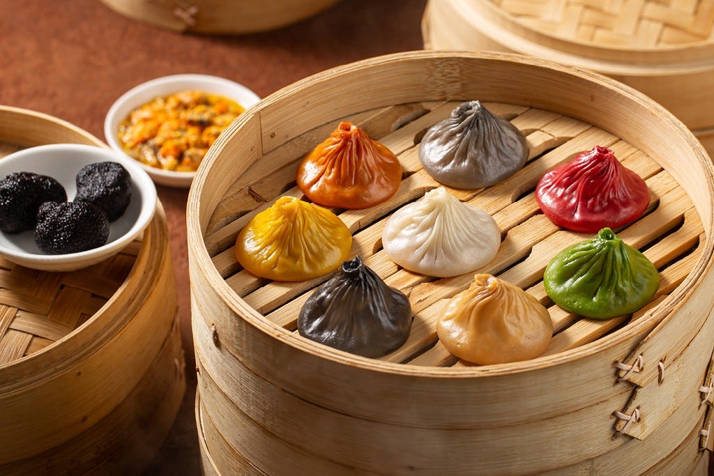 オリジナル、ガーリック、チーズ、フォアグラ、黒トリュフ、キムチ、蟹みそ、ピリ辛四川という8種のフレーバーを一度に楽しめる「8色小籠包」は、本ブランドを象徴する看板メニューとして世界中で親しまれています。