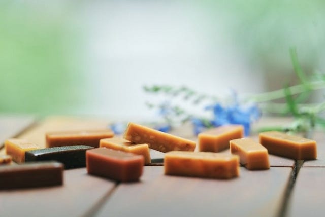 香料・着色料・酸味料を一切使わず、厳選した自然素材だけで作られるキャラメルは、火加減や仕上げのタイミング、さらにはその日の天気にも気を配りながら、すべて手作業で丁寧に製造。素材の風味とやさしい甘さが引き立つ、まさに“手作りのぬくもり”を感じられる逸品です。