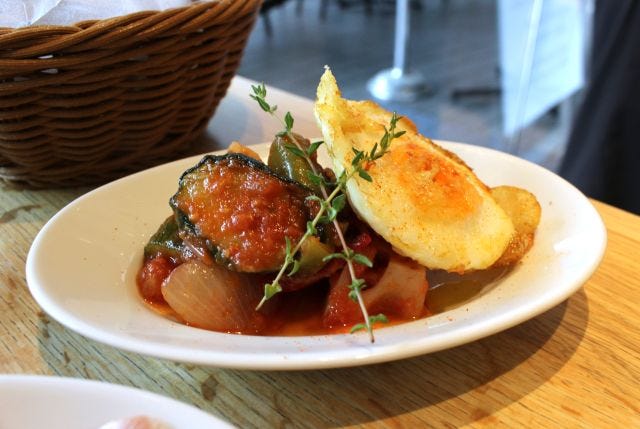 なかでも印象的だったのは、彩り豊かな「兵庫三田野菜のラタトゥイユ」。レンコンやサツマイモなどごろごろ野菜に、フライドエッグが添えられ、食べ応えも抜群です。
