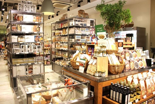 併設の「マーケットストア」では、レストランで使われたチーズや生ハム、調味料などを販売しています。