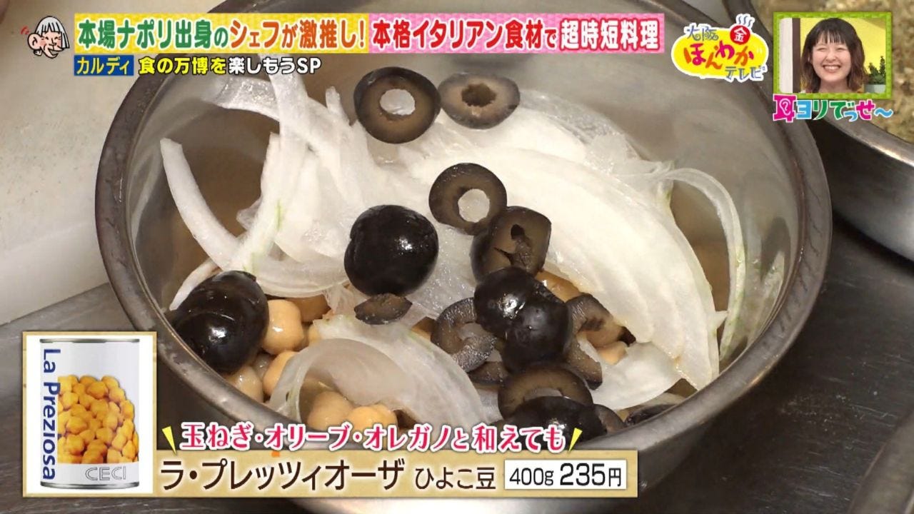 さらに、ひよこ豆に玉ねぎ・オリーブ・オレガノを加え、オリーブオイルで和えればヘルシーなサラダにも。