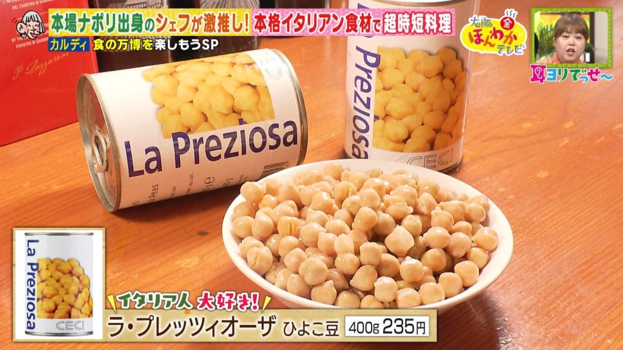 大阪市福島区にある「Raffa by Speranza」のオーナーシェフで、ナポリ出身のラッファさんがKALDIで購入したのは、「ラ・プレッツィオーザ ホールトマト缶」、「ディチェコ スパゲッティーニ No.11(1.6mm)」、「モンティ バジルペースト」、「ラ・プレッツィオーザ ひよこ豆」の4点。