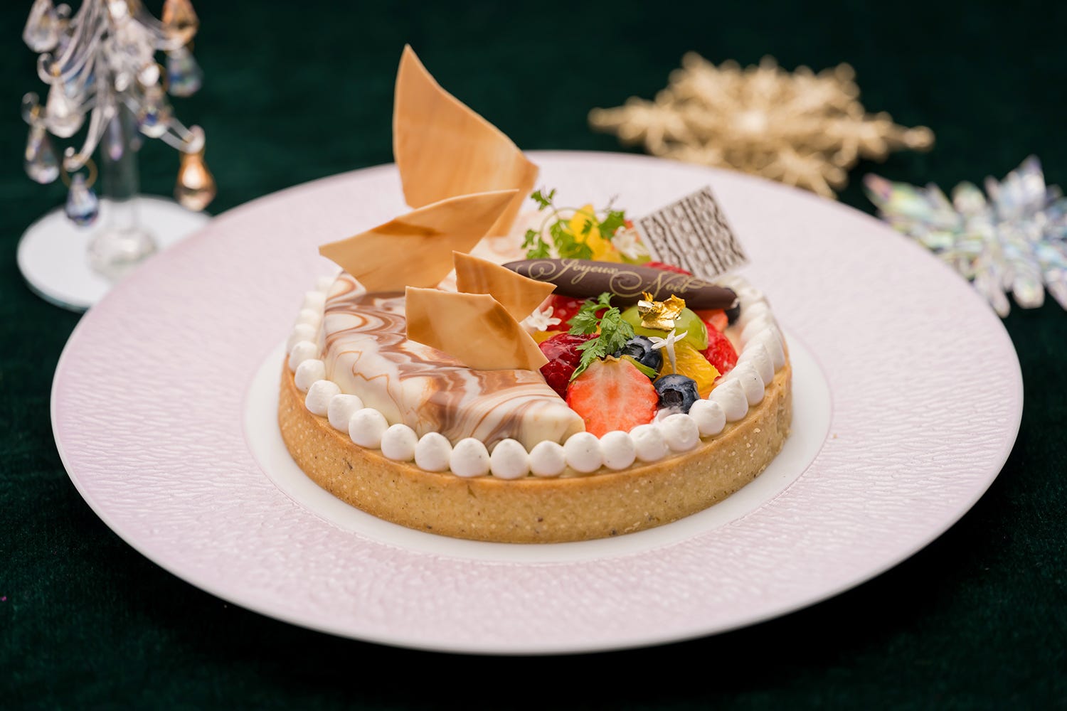 香り高いフォションのアールグレイを使用したクリームと、フルーツのマリアージュを味わえるクリスマス限定タルト。さっくりとしたタルト生地にクリームがたっぷりのって、ひと口ごとに上品な紅茶の香りを楽しむことができる。大人っぽくも華やかな味わいで、特別な日のティータイムや、自分へのご褒美にぴったり。