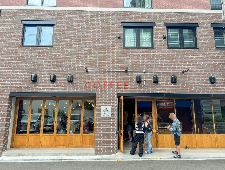 2025年6月14日(土)に、「難波八阪神社」のすぐそばにオープンした「AUN COFFEE ROASTERS」は、ウッド調の扉に「COFFEE」の文字。レンガの壁が印象的な外観は、まるで海外の街角のよう。