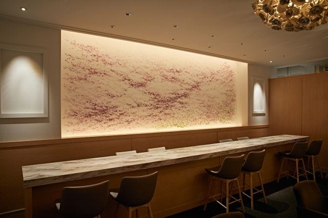 高級フレンチのようなラグジュアリー空間に、カウンター、テーブル、個室を完備しているので、ゆっくりと食事を楽しめる雰囲気も魅力です。