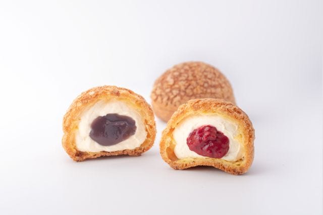 テイクアウトでは、阪神梅田本店限定の新作「クッキーシュー(こしあん/フランボワーズ)」を、期間限定で販売。小豆の風味を生かした「こしあん」と、爽やかな酸味の「フランボワーズ」の2種類がそろいます。