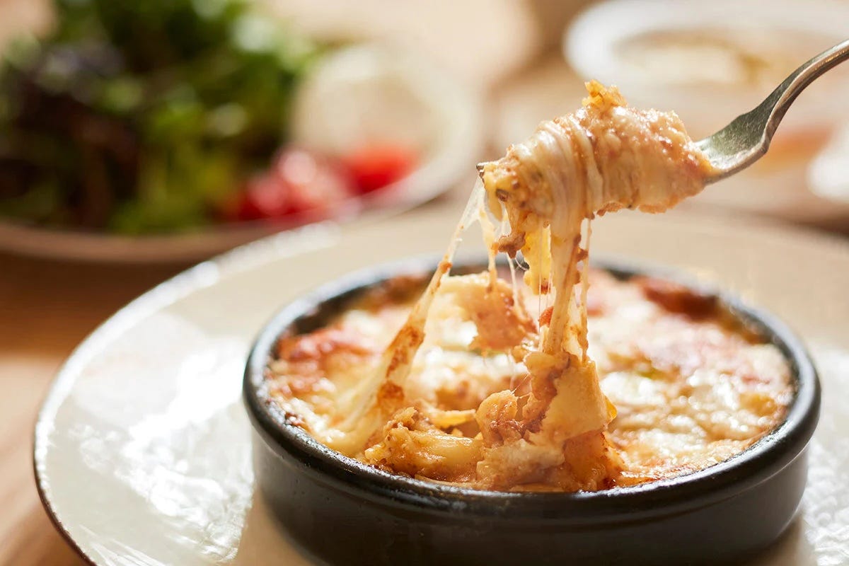 ラクレットなどの代表的なものから、さまざまな種類のチーズを用いた「おすすめチーズレシピ」まで、世界のチーズ料理が楽しめるダイニングで楽しめる、お店の看板商品。お肉も野菜も食べれてチーズも増量!寒さが本格化する冬に絶対に食べたい一品。