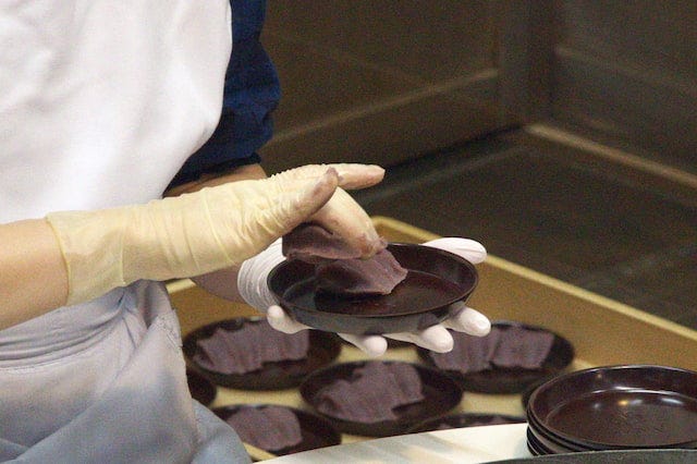 「赤福」本店の「赤福餅」実演風景 「時をかけるあん」は“あん”を主役にした人気催事で、今年で11回目の開催。全国から選りすぐりの和菓子が一堂に会し、素材や製法にこだわった多彩なあん菓子を楽しめる場として、多くの人に親しまれています。
