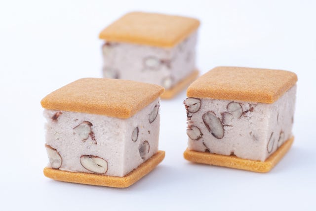 「あずきバターサンド」(1,500円) そのほか、小豆の風味豊かなフローズンドリンク「あずきふらっ茶」や「あずきバターサンド」など、和洋菓子店らしい商品も。足を運んで、“あん”の魅力を再発見してみてはいかがでしょうか。