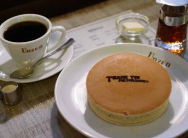 京都・四条烏丸「珈琲の店 雲仙」の「コーヒーとホットケーキのセット」(1人前/1,430円)※11月1日(土)~11月3日(月・祝)出店     東京・神保町「さぼうる」の「クリームソーダ〈ブルーハワイ・いちご・レモン・メロン・オレンジ・ぶどう・カルピス〉」(1杯/各800円)※11月1日(土)~11月3日(月・祝)出店