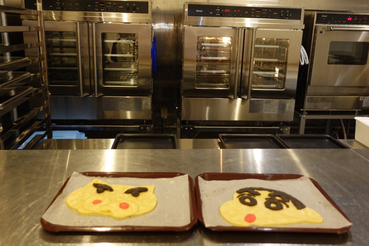 形づくりを終えたら、スタッフがガスオーブンで焼き上げてくれます。165度で17分間焼成し、その後冷却をします。完成するまでは館内で買い物などを楽しみ、再び店舗を訪れる流れに。